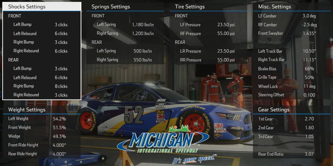 NASCAR Heat 5 Setup for Xfinity at Michigan