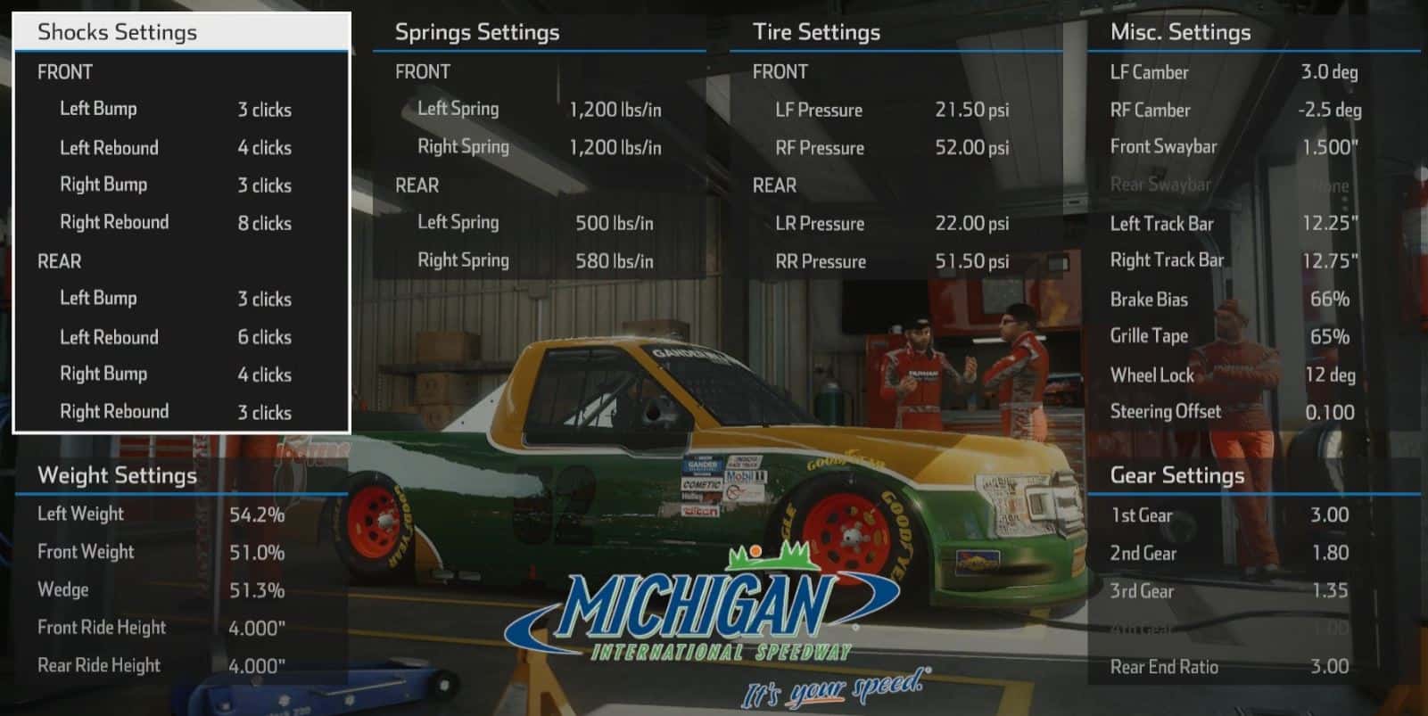 NASCAR Heat 5 Setup for Trucks at Michigan